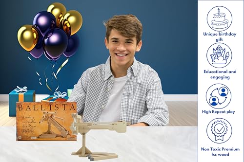- WHATS INCLUDED? The Roman Ballista catapult kit comes with all parts precut and ready to assemble to build a working model Ballista. Model kit includes 3 wooden madalion projectiles.