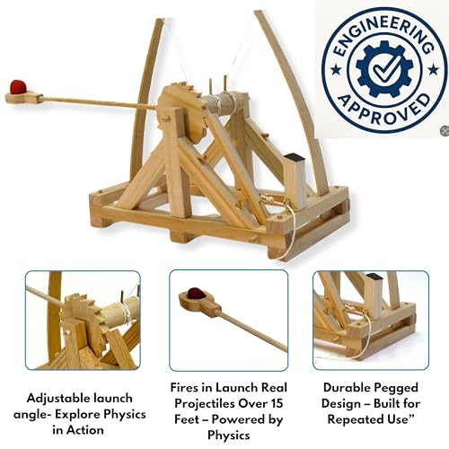 - BUILD A FUNCTIONAL CATAPULT MODEL – Recreate one of Leonardo Da Vinci's most ingenious inventions with this hands-on STEM kit. This DIY wooden building kit includes a detailed instruction booklet with historical and scientific insights. A fun and educational toy for kids and adults interested in engineering, design, and science projects.